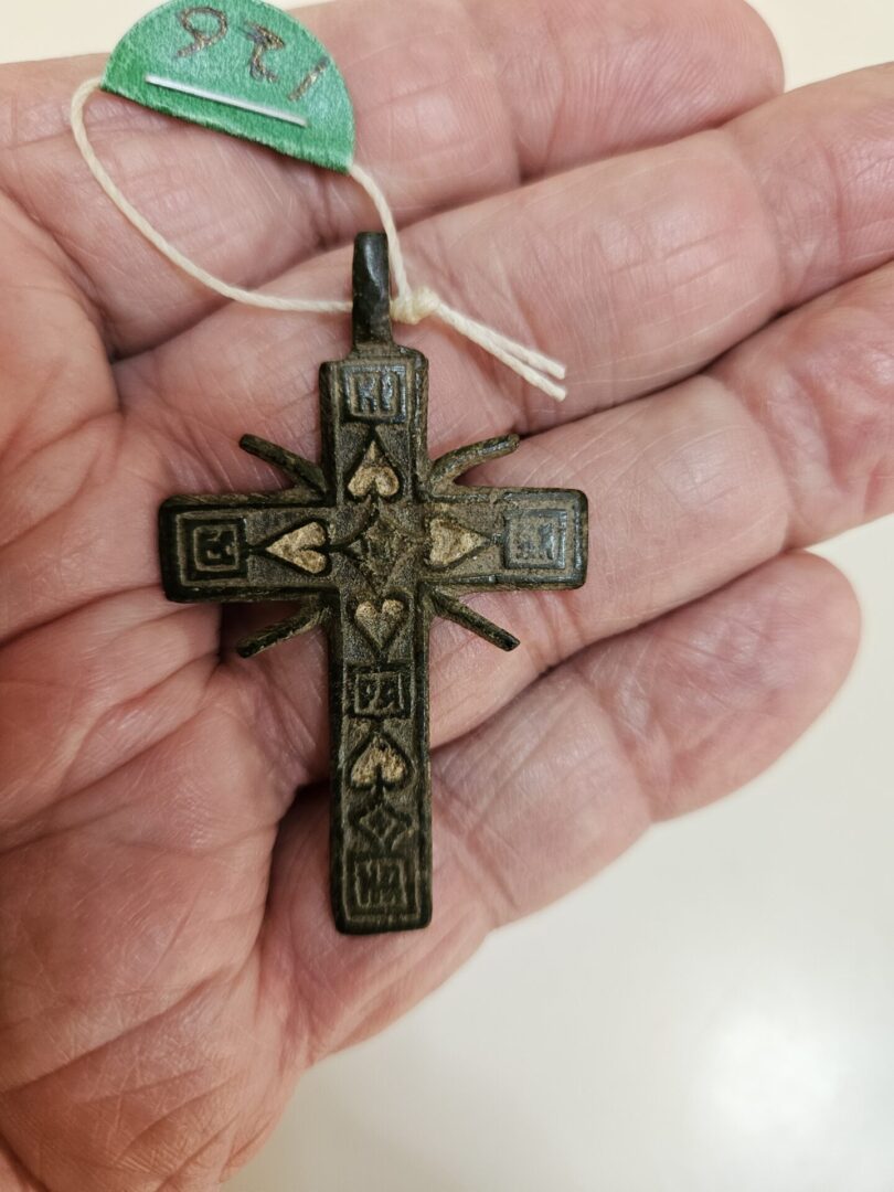 Well-worn and quite rare with enamel and hearts on the back Circa 1700s