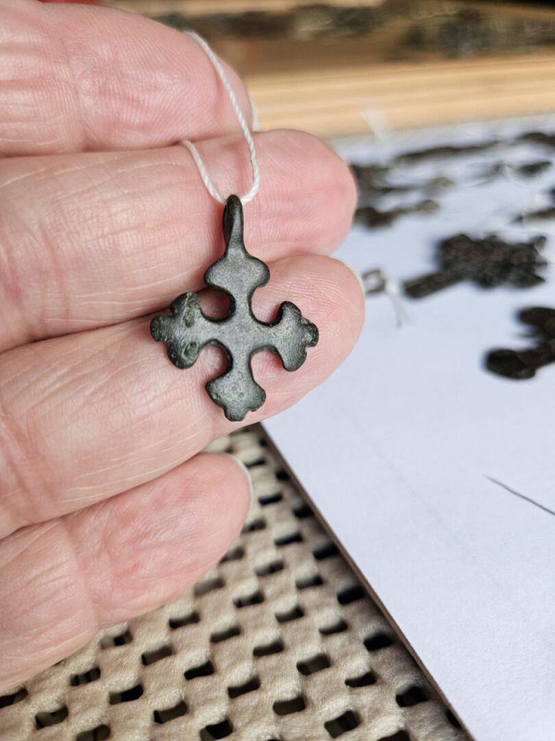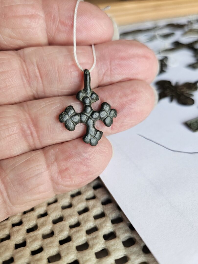 This is a 4-pointed equilateral cross with the ends of the branches and the middle in the form of pellets that indicate the granulation. R5 10-20 of these specimens known to exist.