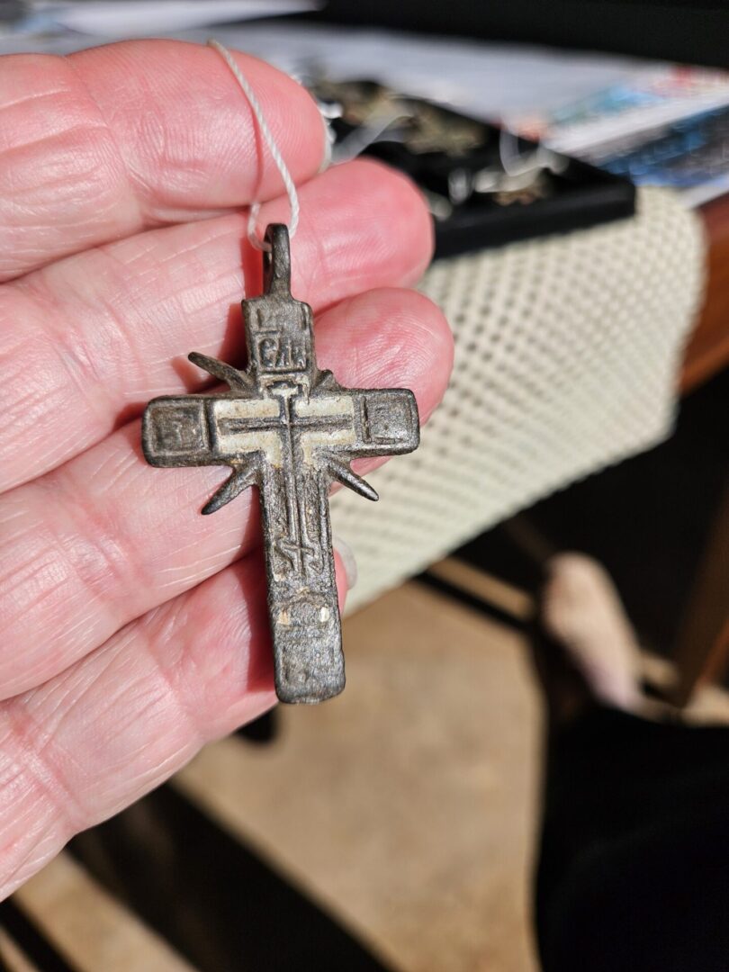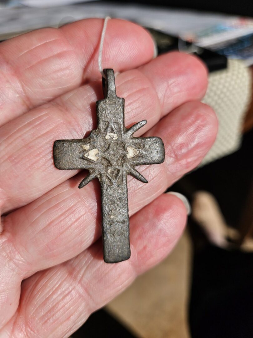 Well-worn and quite rare with enamel and hearts on the back. Circa 1700s